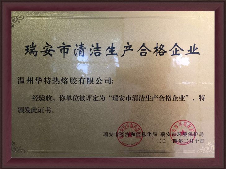 瑞安市清潔生產(chǎn)合格企業(yè)