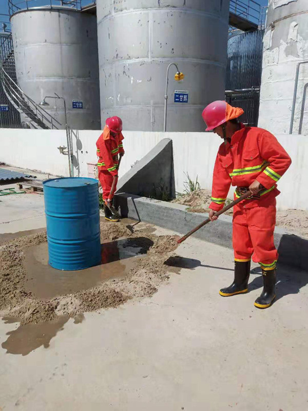 假設(shè)在合成車間生產(chǎn)期間,油泵在作業(yè)時突發(fā)泄露,導(dǎo)致高溫度的導(dǎo)熱油流出,高溫度的導(dǎo)熱油遇到火花容易起火,還會造成車間周圍的土壤污染,甚至流入下水管道,有可能流入附近河流,污染河道。安環(huán)部接報后,及時調(diào)整力量進行快速處置。