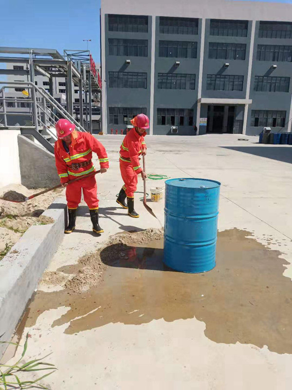 接到突發(fā)環(huán)境事件報警后組織救援力量奔赴現(xiàn)場,協(xié)助先期到達的調(diào)援組開展應(yīng)急處置工作,控制事件發(fā)展。實施現(xiàn)場警戒。在事故現(xiàn)場拉起警戒線,禁止無關(guān)人員進入警戒線內(nèi)。重點核實事故對土地、水體、大氣環(huán)境的危害;對人身的傷害;對設(shè)備、物體的損害,以及事故破壞范圍、污染物排放情況、污染途徑、危害程度、周圍環(huán)境狀況等。現(xiàn)場處理人員需佩戴所要求的防護用品及防毒面具?,F(xiàn)場用沙土圍堤,回收物料,避免進入下水道;剩余液體用吸收棉吸附,并將吸收棉回收,疏散周邊員工至盡可能的安全防護距離以外。在應(yīng)急響應(yīng)終止后及時將事件的調(diào)查處理、應(yīng)急監(jiān)測等情況以文字的形式報告中心應(yīng)急演練領(lǐng)導(dǎo)小組。